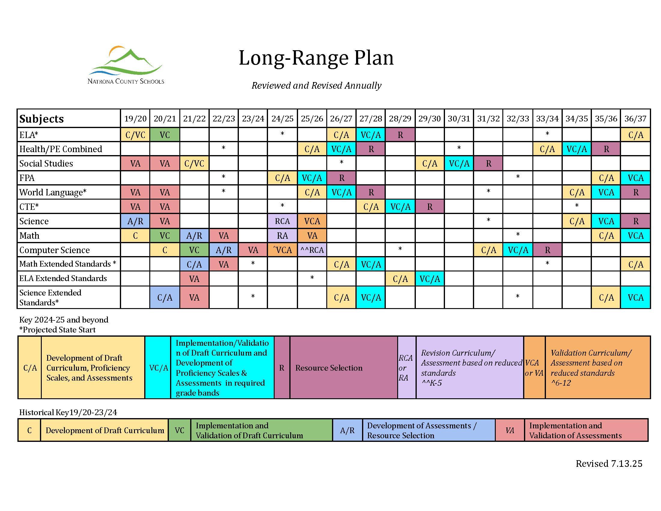 Natrona County School District has established an aligned, articulated and assessed curriculum, commonly referred to as a Guaranteed and Viable Curriculum, in all ten content areas. This work is being done by NCSD Subject Area Committees comprised of members from a variety of schools, grade levels, and courses.